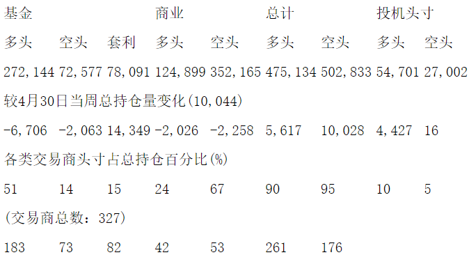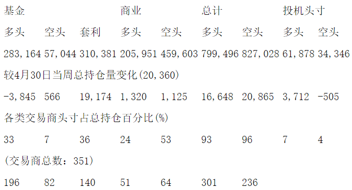 美国商品期货交易委员会(CFTC)最新公布截止5月7日当周COX黄金期货分类持仓报告: 合约单位:100金衡盎司总持仓量:529835