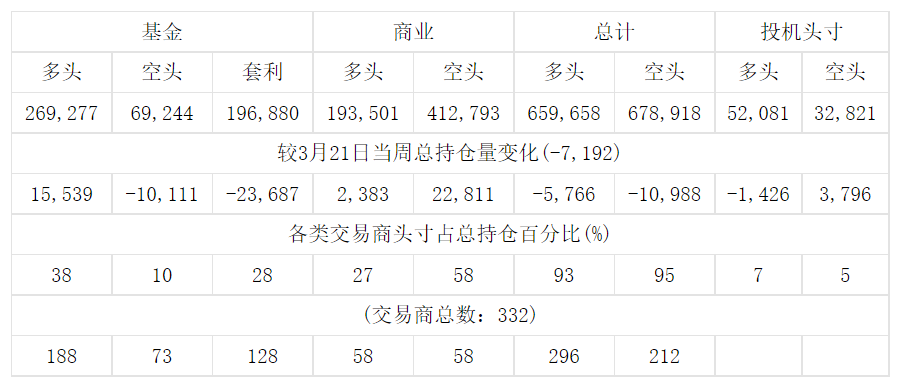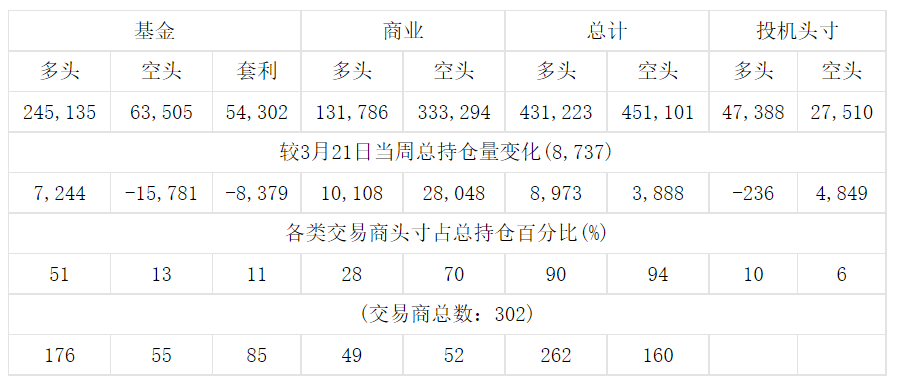 美国商品期货交易委员会(CFTC)最新公布截止3月28日当周COX黄金期货分类持仓报告: 合约单位:100金衡盎司总持仓量:478611