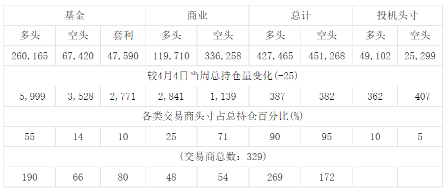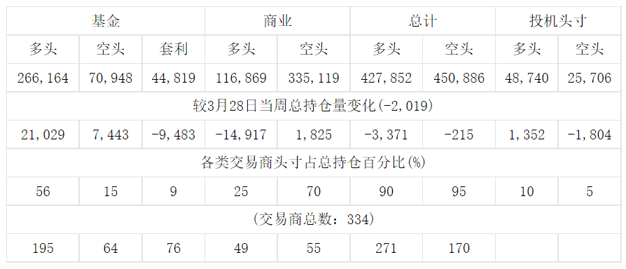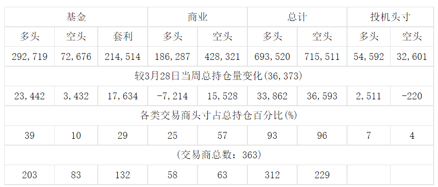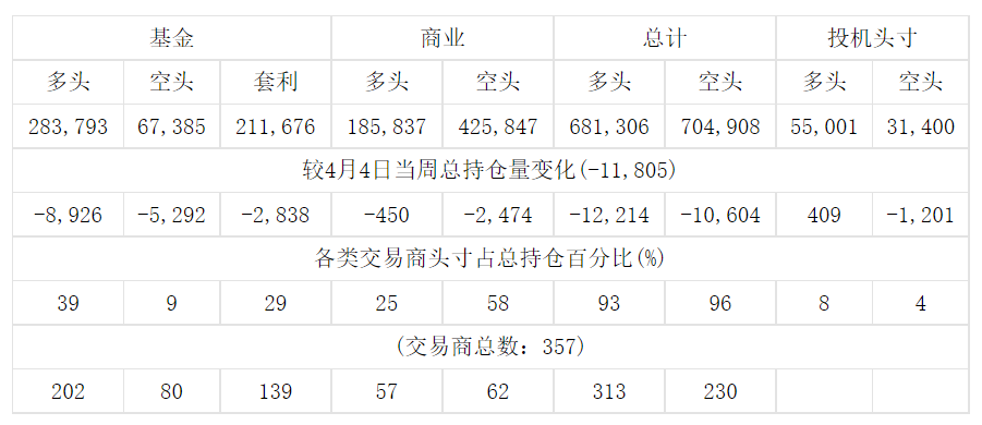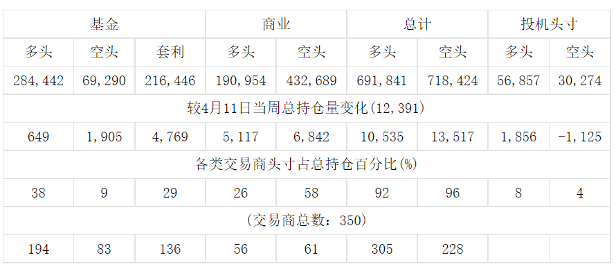 美国商品期货交易委员会(CFTC)最新公布截止4月4日当周COX黄金期货分类持仓报告: 合约单位:100金衡盎司总持仓量:476592