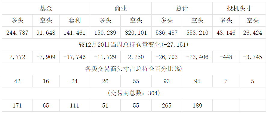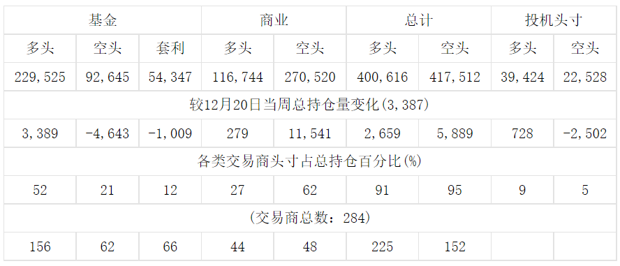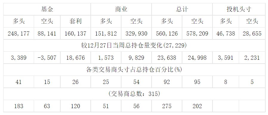 美国商品期货交易委员会(CFTC)最新公布截止12月27日当周COX黄金期货和期权分类持仓报告: 合约单位:100金衡盎司总持仓量:579634