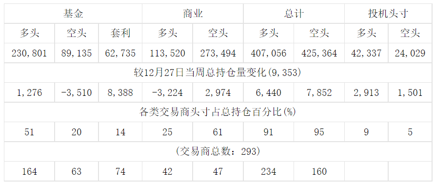 美国商品期货交易委员会(CFTC)最新公布截止1月3日当周COX黄金期货分类持仓报告: 合约单位:100金衡盎司总持仓量:449393