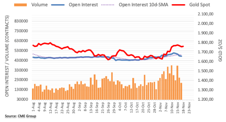 芝加哥商品交易所集团(CGrou)的初步数据显示,黄金期货市场週一未平仓合约量再次下降,这一次减少了近4千份合约。相反,成交量仍然不稳定,当日增加了约6.86万份合约。 金价的目标是1786美元 黄金本週开始处于守势,儘管週一的回调是在未平仓头寸减少的情况下进行的。也就是说,短期内不太可能进一步下跌,反而可能出