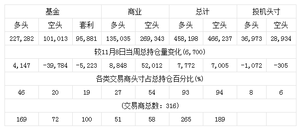 美国商品期货交易委员会(CFTC)最新公布截止11月22日当周COX黄金期货分类持仓报告: 合约单位:100金衡盎司总持仓量:449542