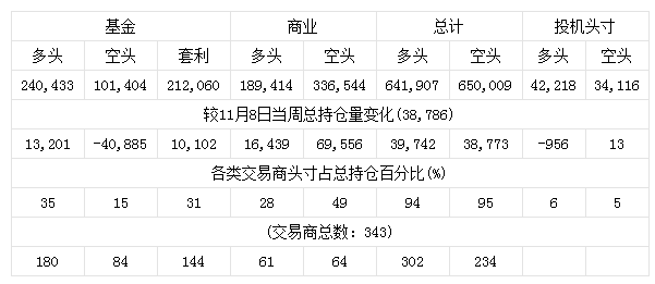 美国商品期货交易委员会(CFTC)最新公布截止11月15日当周COX黄金期货和期权分类持仓报告: 合约单位:100金衡盎司总持仓量:684124