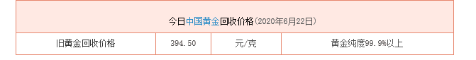 旧黄金回收多少钱一克(2020年6月22日)