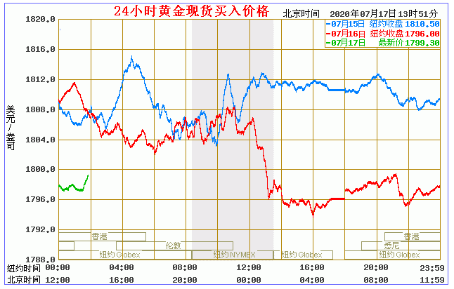 周五(7月17日)亚市早盘,现货黄金开于1797.62美元/盎司,最高上探至1799.58美元/盎司,最低触及1795.99美元/盎司,截至发稿现报1797.34美元/盎司,跌幅0.01%。因经济重新开放,周四晚间公布的美国6月零售数据好于预期。但因美国疫情反弹,多地叫停重启,美国就业市场重新面临压力,昨日晚间公布的美国上周的初请人数降幅缩小,为130万人。