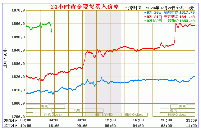 周三(7月22日)亚市盘中,现货黄金惊现暴涨一幕,在短短几分钟内暴拉超20美元,接连攻克1850以及1860关口,不断刷新9年高位,愈发逼近历史高位1921美元。