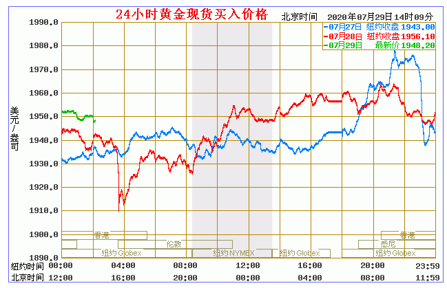 今日黄金价格走势图(2020年7月29日)