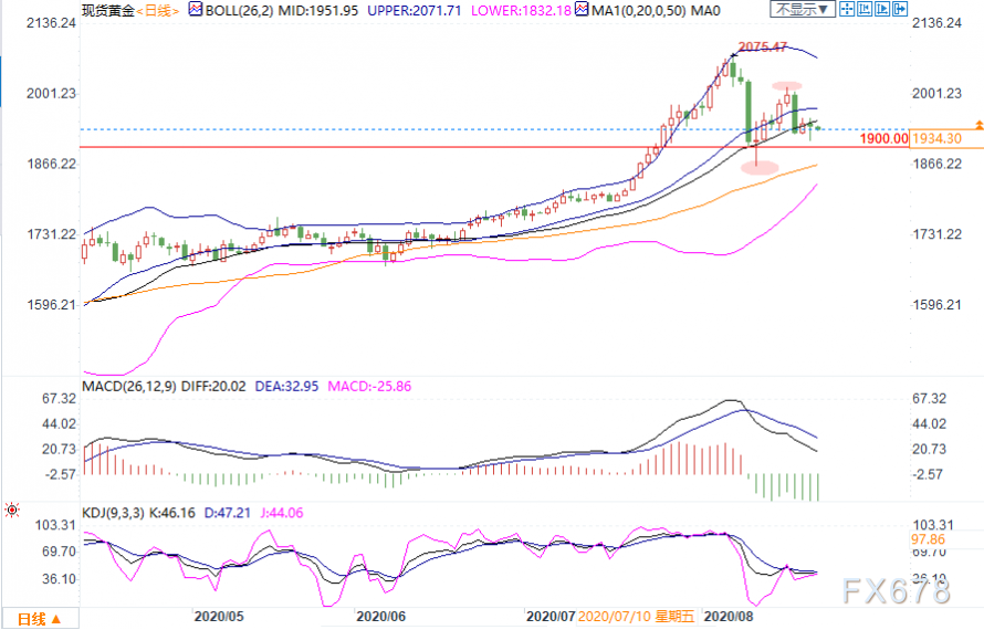 上行方面,先留意布林带中轨1951.96;若上破则留意20日均线1974.00附近,进一步阻力位上看周二高点2015.59。一旦该点位被突破,有望提振金价再度测试纪录高点2075.47。