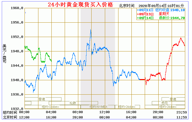 今日黄金价格走势图(2020年9月14日)