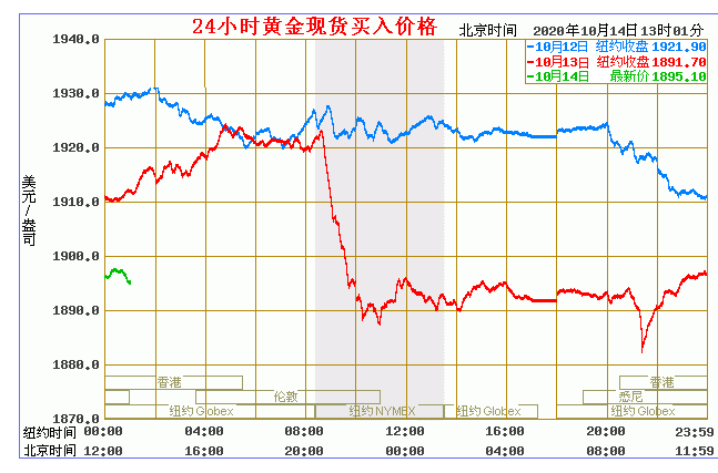 今日黄金价格走势图(2020年10月14日)