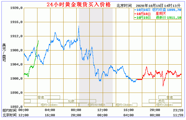 今日黄金价格走势图(2020年10月19日)