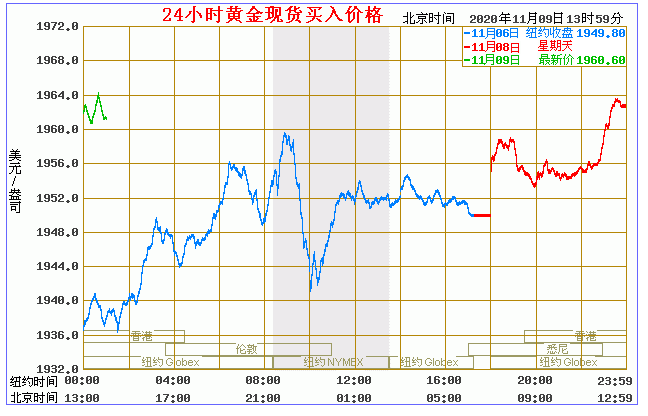 今日黄金价格走势图(2020年11月9日)
