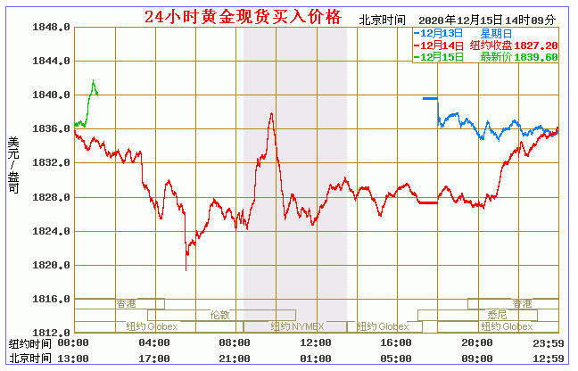今日黄金价格走势图(2020年12月15日)