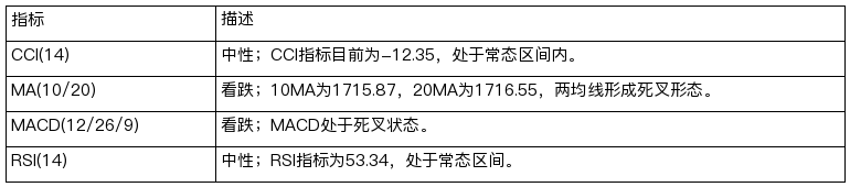 若价格上行,短线或测试1720.6阻力,突破后或将进一步走高。