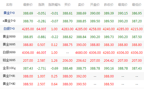 上海黄金交易所今日金价实时行情(2022年9月9日) 备注:以上黄金价格今天多少一克仅供参考,请以官方价格为准。