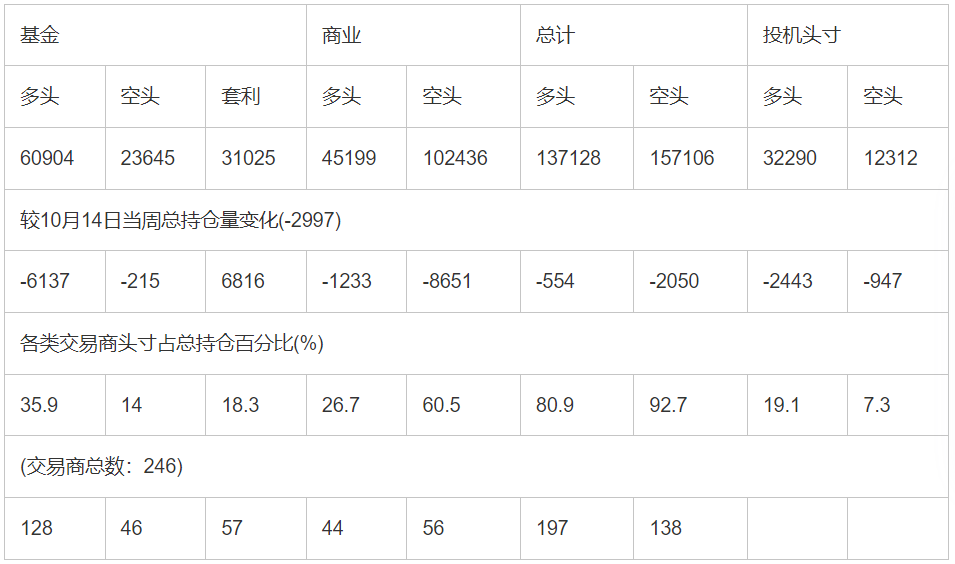 截止10月21日当周COX(纽约商品期货交易所)白银期货和期权分类持仓报告: 合约单位:(5000金衡盎司的合同)总持仓量:235573
