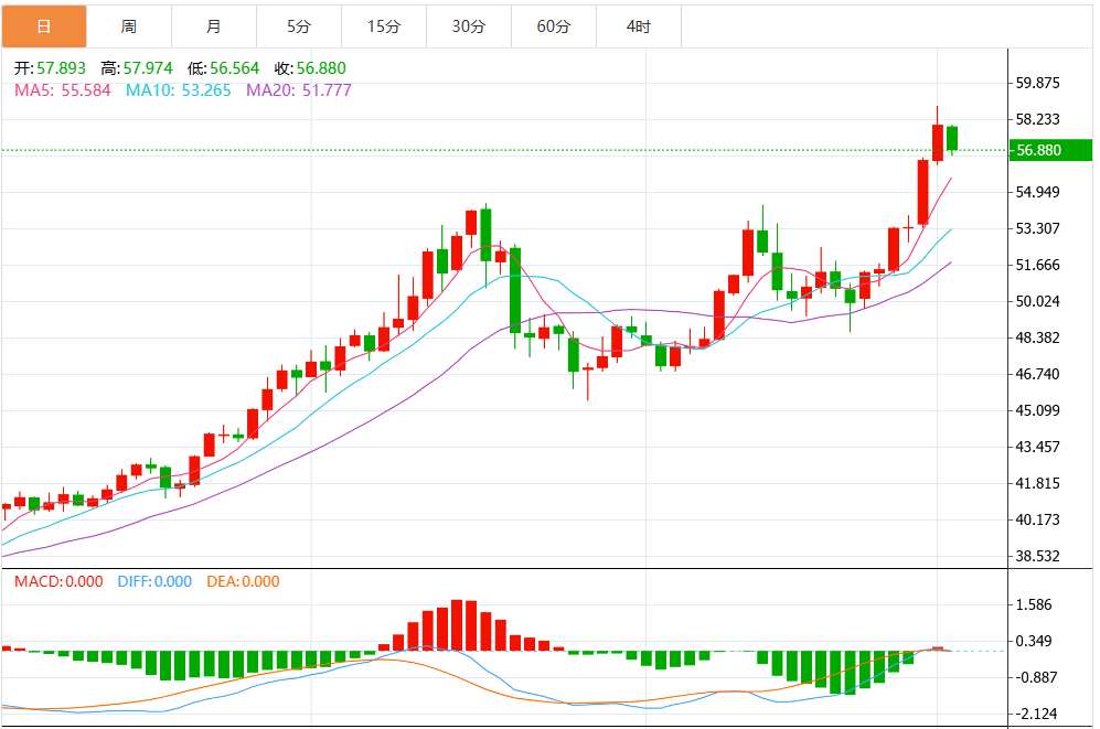 周二盘中,现货白银报57.307,跌幅1.15%。 今日分析:在57.00之上,看涨,目标价位为59.00,然后为60.00。 技术点评:RI技术指标在50%中性区域附近。 支撑位:57.0056.4555.50 阻力位:61.0060.0059.00 (亚汇网编辑:冰凡)