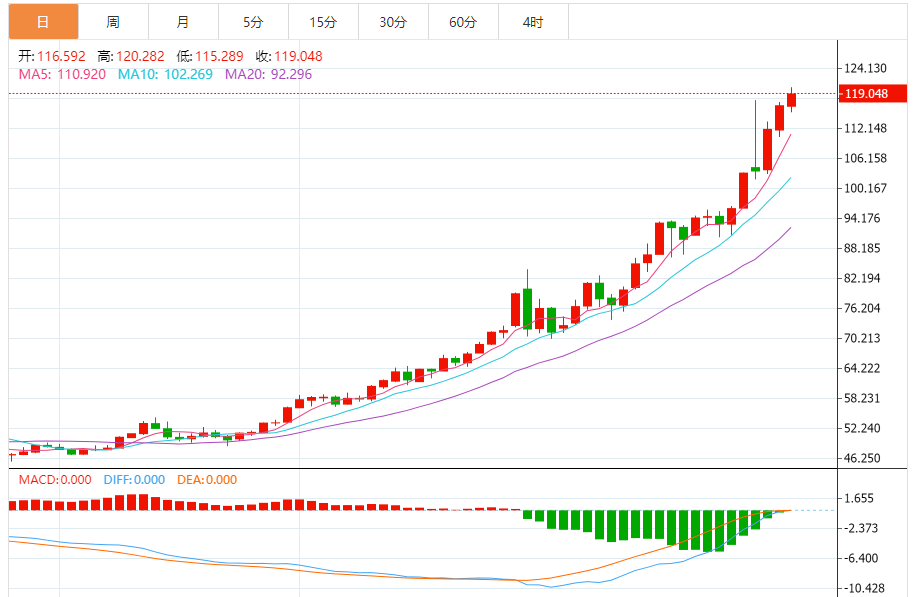 1月29日,白银价格延续了自1月22日开始的连胜势头,周四亚洲时段每金衡盎司约为117.70美元。此前,白银价格曾飙升至119.42美元的新历史高点,受经济和地缘政治不确定性中避险需求持续支撑。本月迄今,灰色金属已上涨超过65%。 尽管美元(UD)反弹,投资者对包括白银在内的贵金属的兴趣依然强劲,凸显了对货币风险的强劲