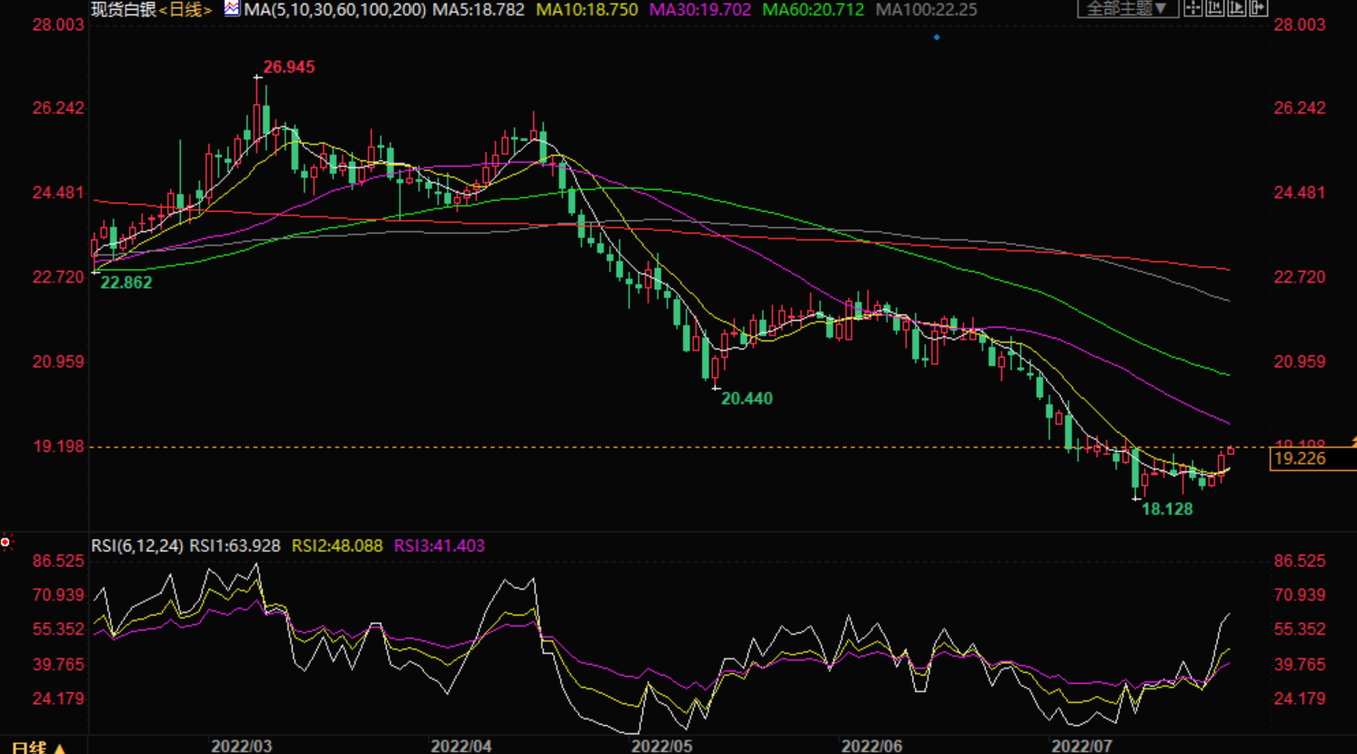 考虑到最近美联储推动的上涨和RR走强,白银价格可能会保持美联储出台后的上涨势头,领先于美国第二季度国内生产总值(GDP)的年率化,预期为0.4%,而前值为-1.6%。