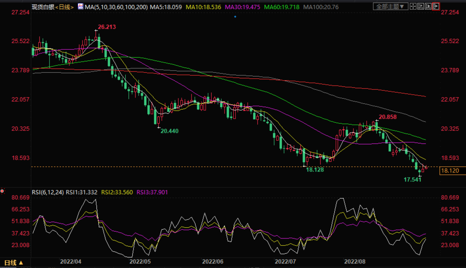 美国最新就业数据公布后,白银价格也出现了波动。数据显示,美国经济在8月份增加了超过32万个就业岗位,前一个月增加了超过52.8万个就业岗位。失业率上升至3.7%,而工资增长低于预期。尽管如此,由于分析师预计美联储将继续收紧货币政策,美元指数在报告发布后仍有所上升。周一,美元指数上涨0.40%,超过25美元,接近110美元。白银与美元呈反比关系。
