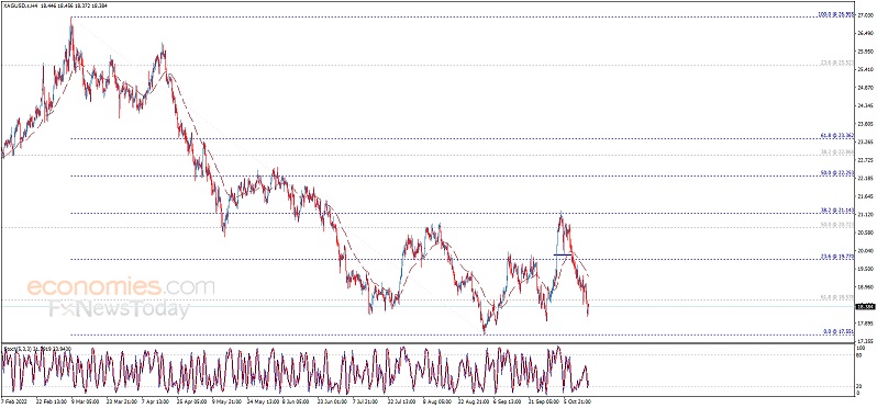 因此,看空趋势在日内以及短期内仍将占据主导地位。从4小时图来看,50周期指数移动平均线(EMA)施压银价。需要指出的是,若银价突破18.60美元/盎司,这可能推动银价出现短暂的升势,然后再重新转为下跌。