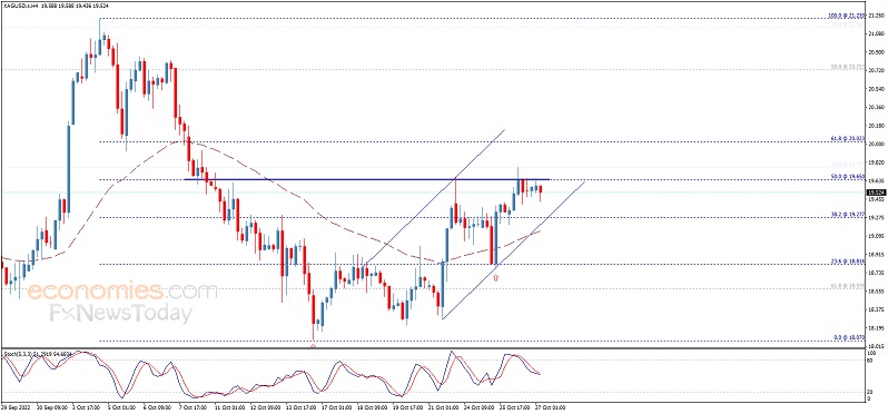 周四(10月25日)欧市早盘,现货白银短线快速下滑,银价目前跌至19.40美元/盎司附近。