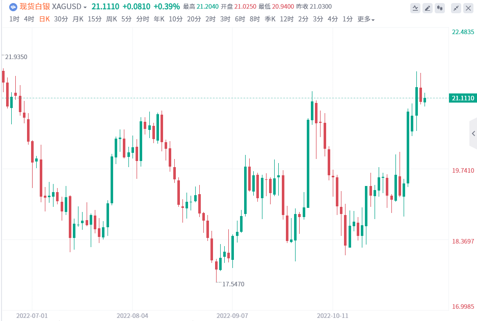 白银可能加速上扬并致力於收复22美元的整数位。下一相关阻力接近22.30-22.35美元区域,紧接着为6月震荡高点22.50美元附近,後者应构成关键点。若果断突破,料为银价延续近期自18美元关口附近以来的涨势奠定基础。