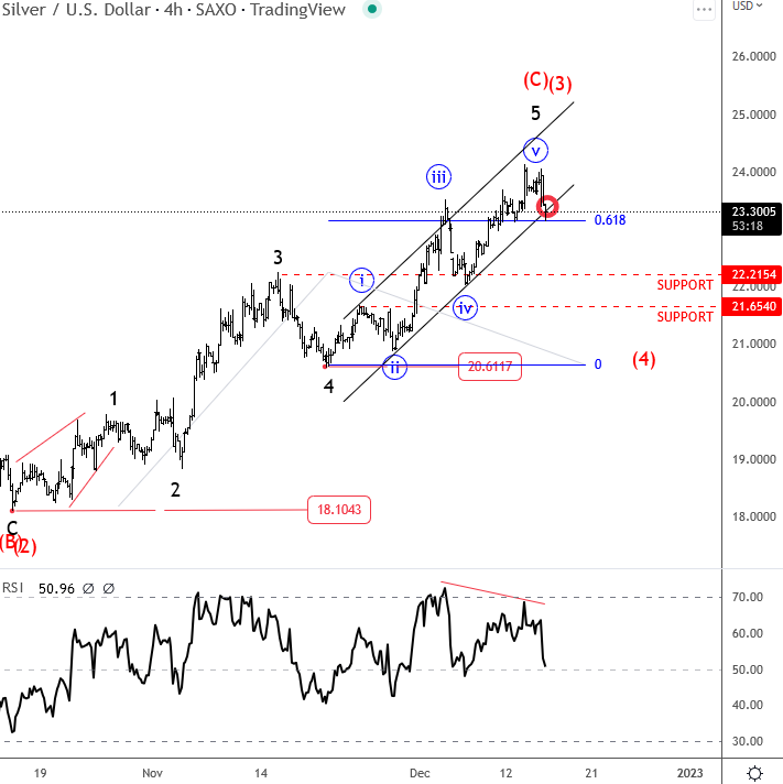 我们实际上观察到更高程度的波浪(4)修正,可以在看涨继续之前重新测试22-20支撑区域,但前提是价格设法保持在18无效水平以上。
