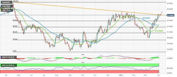 周一(4月3日),现货白银维持日内跌势,银价现报23.60美元/盎司附近,日内大跌2%。知名财经网站FXStreet分析师Anil Panchal指出,若跌破重要支撑23.50美元/盎司,银价恐进一步下跌。