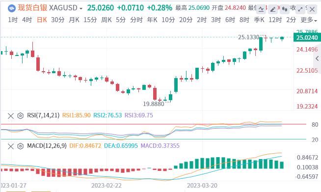 因此,谨慎的做法是等待一些近期盘整或适度回调,然后再进行新的上涨。尽管如此,XAG/USD似乎有望超过25.10美元至25.15美元的区间,并进一步攀升至25.35美元至25.40美元的区间。这一势头可能会扩大到26.00美元大关,并在接近26.20美元区域、26.40-26.50美元区域和2022年高点的途中达到下一个相关障碍,略高于27.00美元大关口。