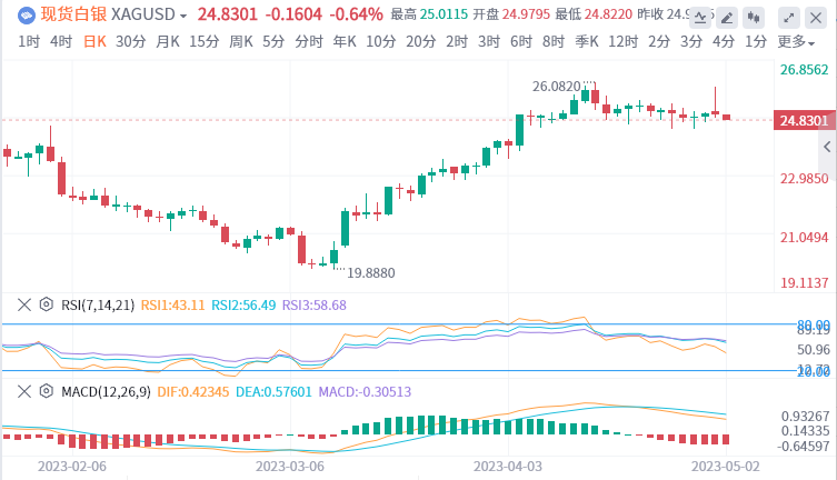 值得注意的是,若银价跌破24.00美元,将凌厉下跌接近1月低点22.75美元附近。