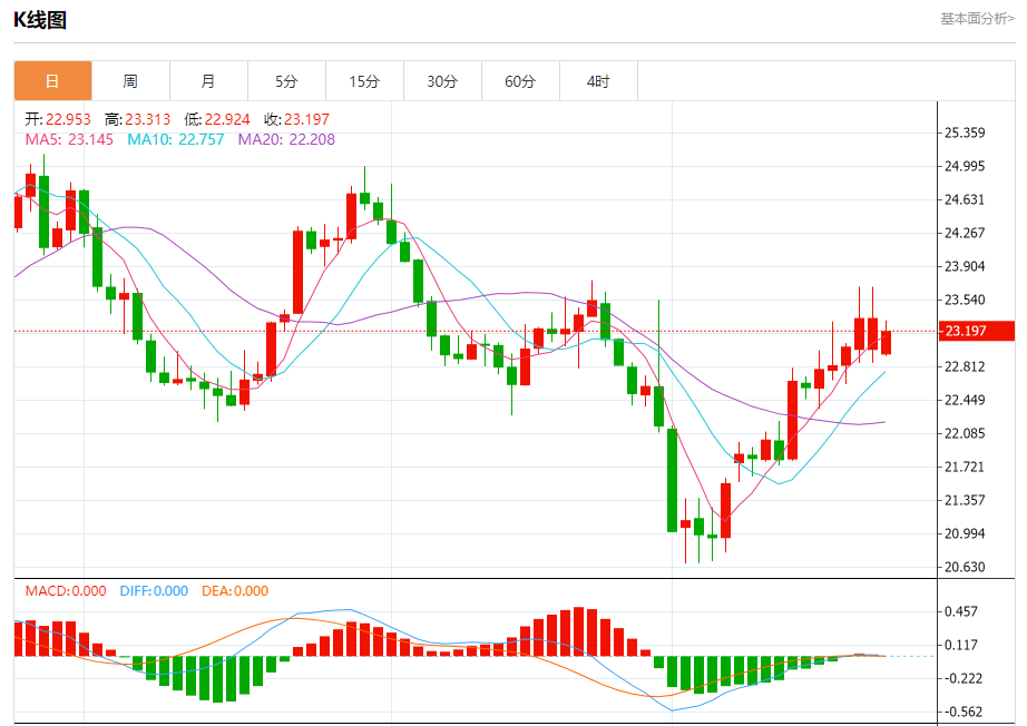 支撑位:23.05 22.92 22.75
