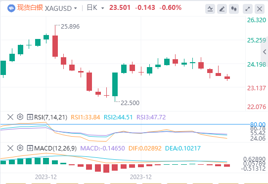 随后,白银/美元可能会加速下跌,进一步跌向12月月度震荡低点,大约在22.00美元左右,然后跌至22.25美元支撑位和22.00美元整数关口。
