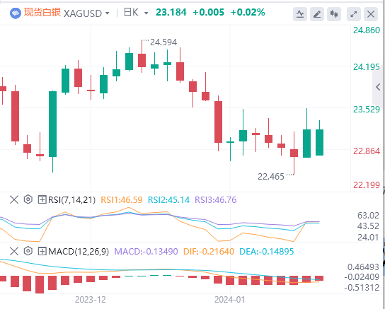 上周五的美国经济数据显示,12月生产者价格下降,导致10年期美国国债收益率下降。交易界越来越倾向于美联储降息的可能性,最早在3月开始降息的可能性为79%。这种预期正在影响白银目前的市场表现。