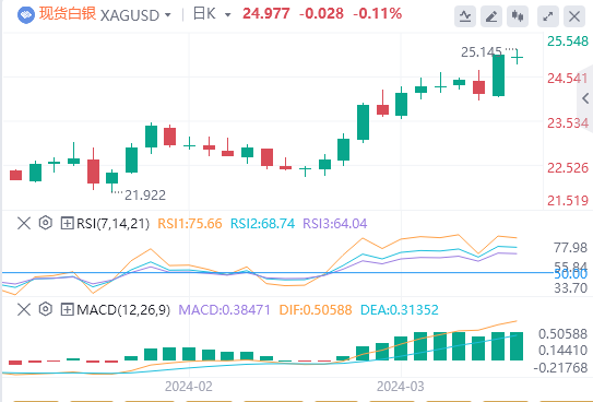 尽管2月份的通胀数据表现顽强,但市场对美联储(Fed)在6月份会议上降低利率的预期再次增强,银价在周三迎来了大量买盘。CMEFedwatch工具显示,美联储降息的可能性已上升至69%,接近通胀数据公布前的预期。