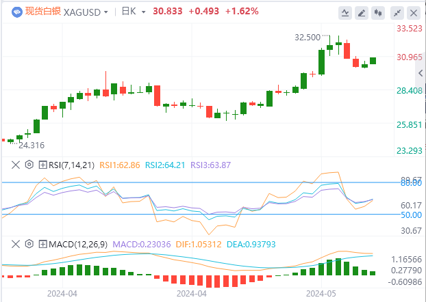 展望未来,美国银行业因阵亡将士纪念日休市,美联储的重要讲话和第一季度GDP数据预计将影响市场。积极的GDP数据可能会进一步走强美元,从而影响白银价格。