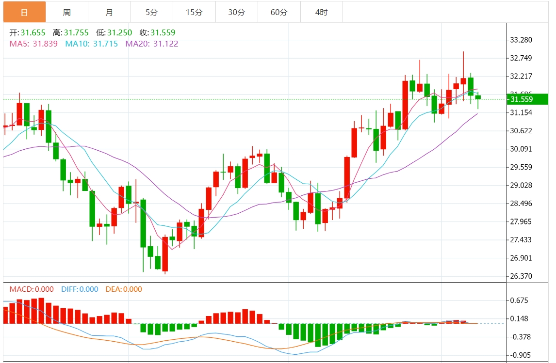 上档方面,如果多头将银价推升至32.00美元上方,那么年内至今(YTD)高点32.95美元可能会受到考验。