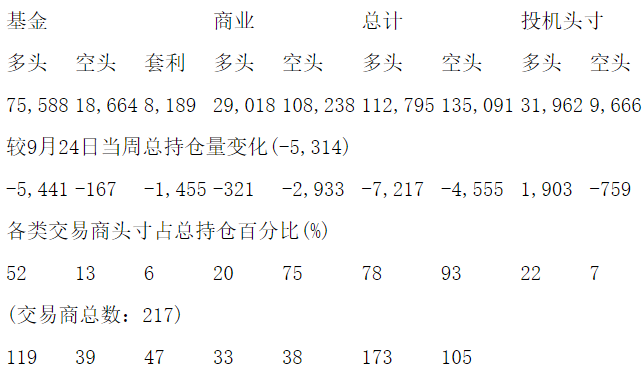 美国商品期货交易委员会(CFTC)最新公布截止10月1日当周COMEX白银期货分类持仓报告: