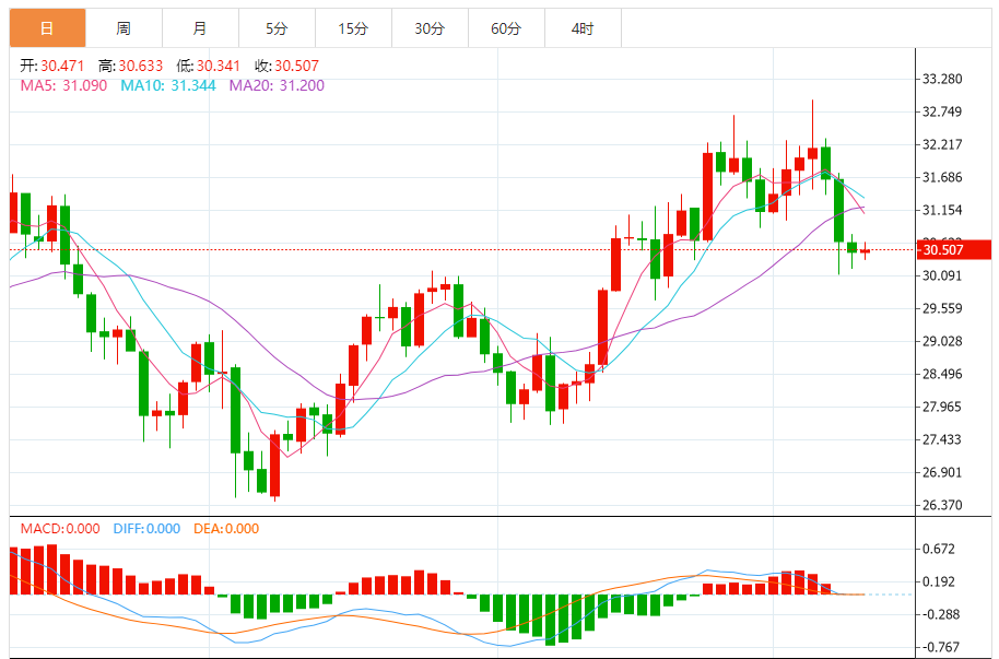 今天的预期交易区间:在30.06美元支撑位和30.90美元阻力位之间。