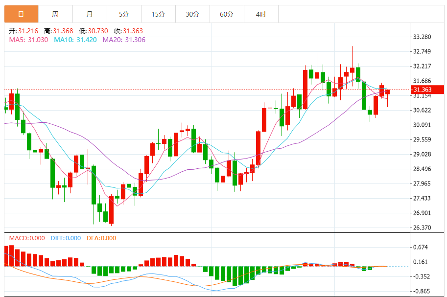 今天的预期交易区间:在30.90美元支撑位和31.80美元阻力位之间。