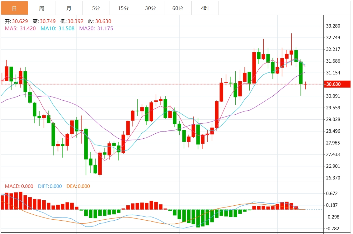 今天的预期交易区间在 30.90 美元支撑位和 31.80 美元阻力位之间。