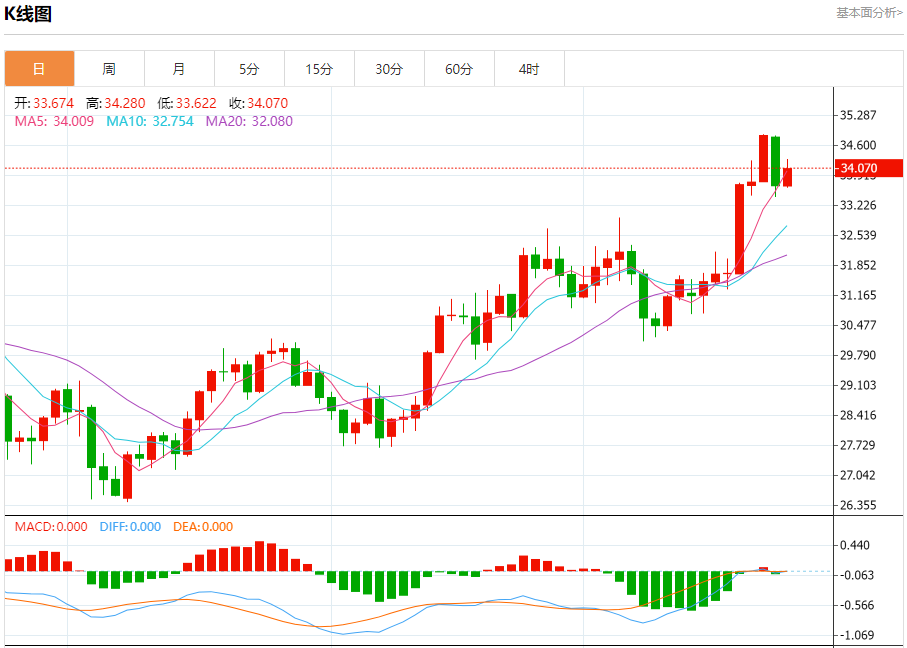周四盘中,现货白银报34.010,涨幅0.99%。