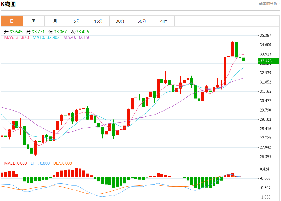支撑位:33.00 32.80 32.58