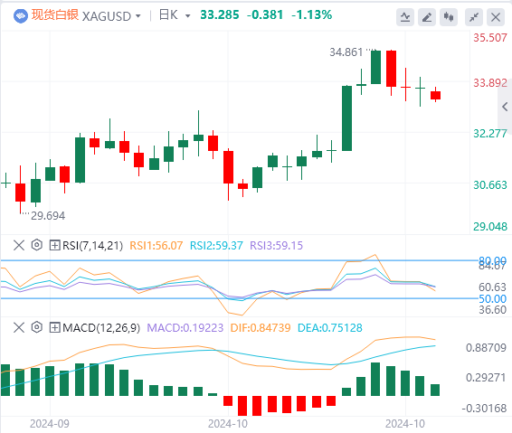 日图技术指标虽然一直在失去看涨动能,但仍保持在上涨区域。这进一步表明,谨慎的做法是,等待银价明确跌破33.00美元关口,然后再对上周从2012年10月以来最高水平的回调设立头寸。若跌破32.75-32.65美元阻力转支撑位后出现一些跟进卖盘将再次确认看跌倾向,并打压银价。