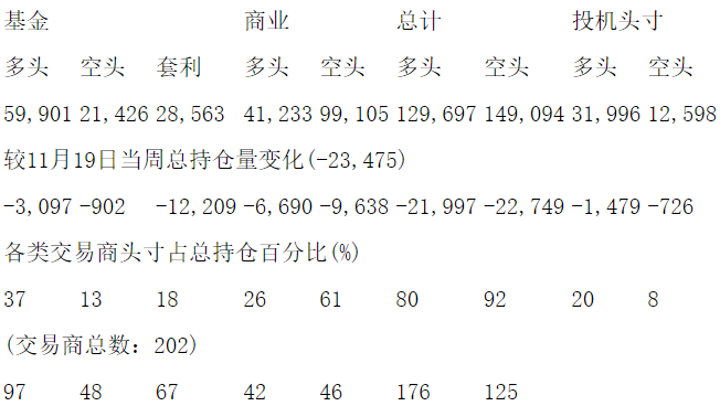 美国商品期货交易委员会(CFTC)最新公布截止11月26日当周COMEX白银期货和期权分类持仓报告: