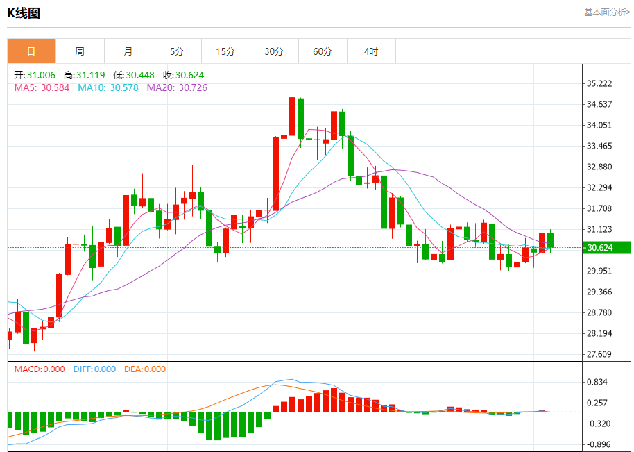 技术点评:30.70附近形成了一个支撑的底部,将带来走势短期内的稳定。