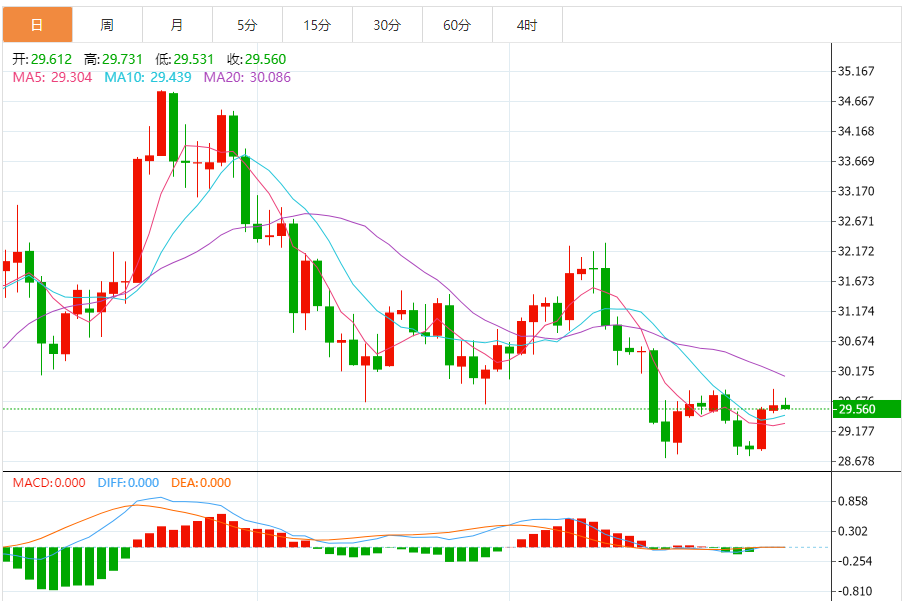 今天的预期交易区间:在29.10美元支撑位和29.90美元阻力位之间。