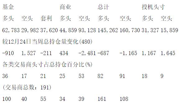 美国商品期货交易委员会(CFTC)最新公布截止12月31日当周COMEX白银期货和期权分类持仓报告: