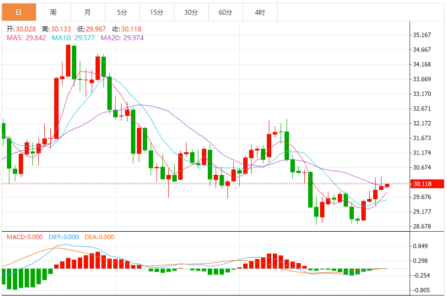 今天的预期交易区间:在29.70美元支撑位和30.60美元阻力位之间。
